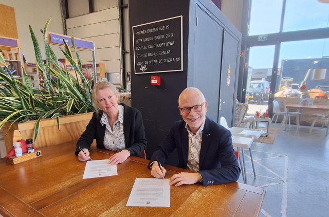 Vandaag ondertekenden de gemeente Nuenen en Het Goed de hernieuwde samenwerkingsovereenkomst voor de inzameling en verwerking van herbruikbare huisraad.