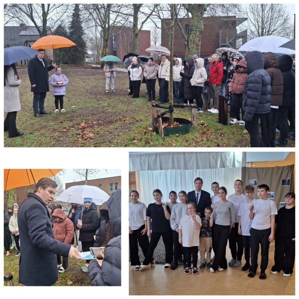 Na het optreden liep de groep naar de herdenkingsboom, die vorig jaar bij de opvanglocatie is geplant. Bij de boom werd één minuut stilte gehouden voor de slachtoffers en voor iedereen die door de oorlog is geraakt. Het moment onderstreepte de kracht van samen herdenken en elkaar steun bieden.
